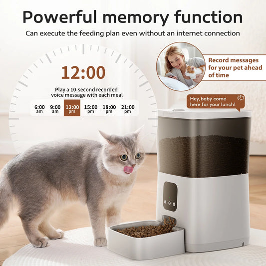 • 7L Automatic Smart Food Dispenser Pet Feeder, Wi-Fi Timed with APP Remote Feeding for Cats and Dogs White 13.10 X 6.50 X 12.60 In
